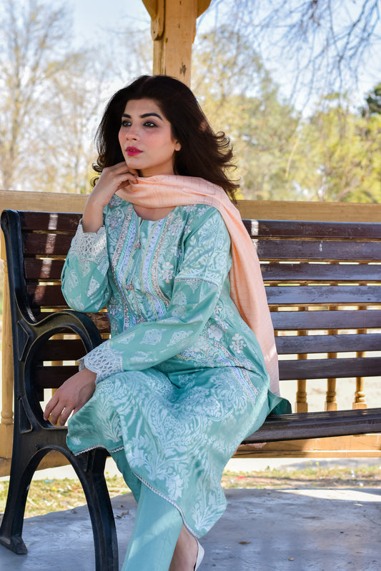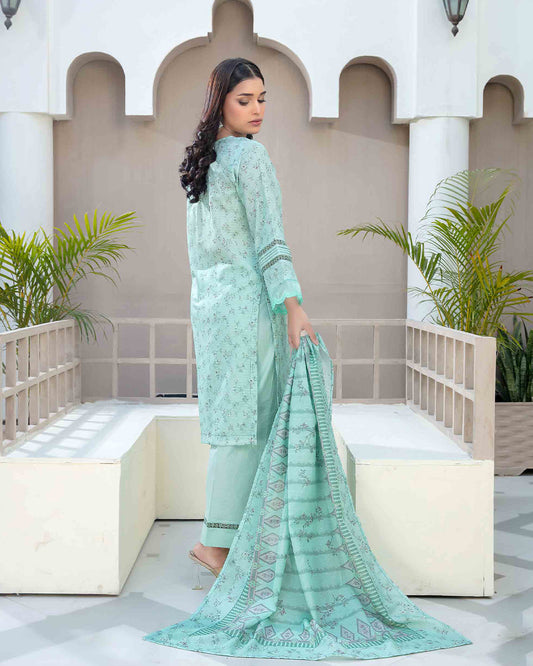 Aqua Frost - Lawn printed shirt with printed dupatta