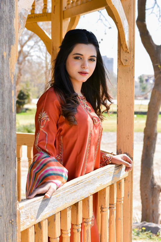 Amber Glow - Viscose Digital Print with Diamond Dupatta 3pc