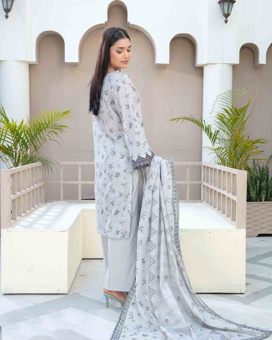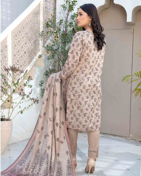 Soft Mocha - Lawn printed shirt with printed dupatta